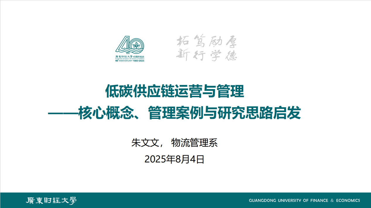 为深入贯彻教育部等九部门《关于加快推进教育数字化的意见》中“扩大优质教育资源受益面,助力学习型社会建设”的部署,进一步提升研究生培养质量,工商管理学院(粤商学院、创新创业学院)于2025年8月4日以“专题讲座”形式开展线上提前培养活动。讲座主题为“低碳供应链运营与管理——核心概念、管理案例与研究思路启发”,旨在提升2025级36名物流工程与管理硕士研究生新生对专业方向的认知。本次学术讲座由学院副院长韦琦主持,物流管理系青年骨干教师朱文文博士担任主讲人,2025级全体工程管理研究生新生参加本次讲座。